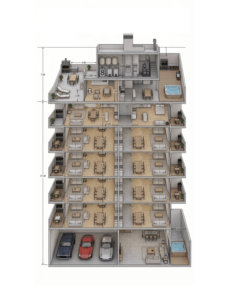 SALE 2442 fue pensado como un edificio funcional, moderno y eficiente, donde cada decisión mejora la vida diaria.